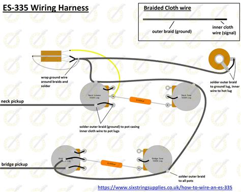 Web main differences of concern for an es 335/semi hollow: Each wiring diagram is shown with a treble bleed modification (a 220kω resistor in parallel with a 470pf cap) added to the volume pots. Few diagrams show the ground wire from the bridge post, and.